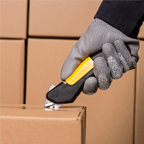 Industrial-grade design with auto-locking safety hood that helps protect the user from blade exposure.